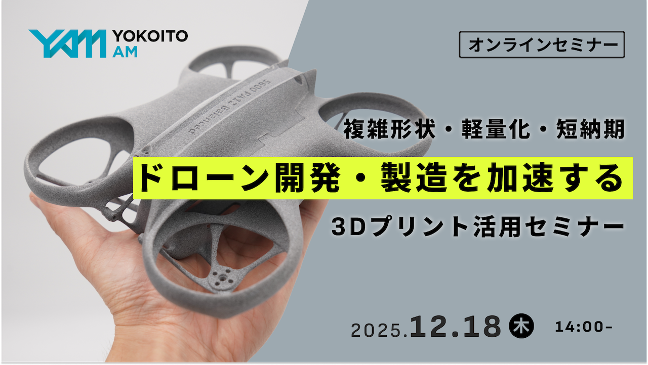 YAMが展開する3Dプリント受託加工サービスでは、ドローン開発・製造における3Dプリント活用のポイントを、事例を交えてわかりやすく解説するウェビナーを開催します。