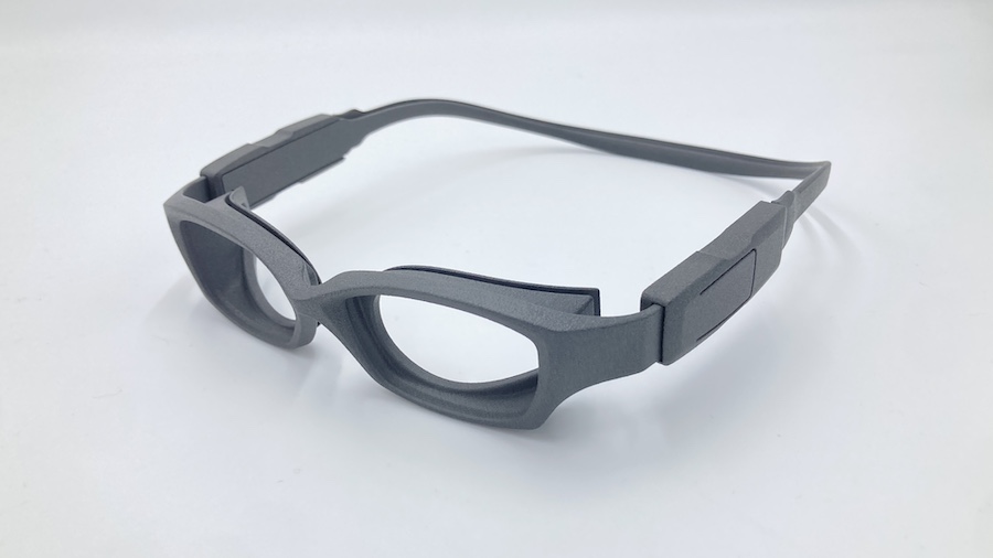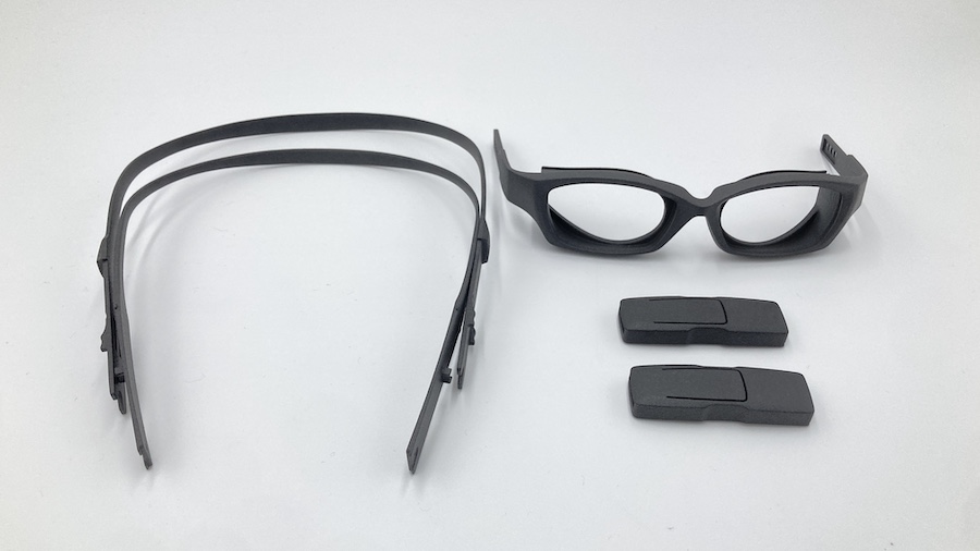 従来のスポーツ用メガネは、顔にメガネをフィットさせるためにゴムベルトが採用されています。このベルト部分とフロント部分の素材を揃えて一体感を出したく、独自に調節機構を考案し、特許を取得しました。現在は製品化に向けて、2020年ごろから製造検証を進めています。